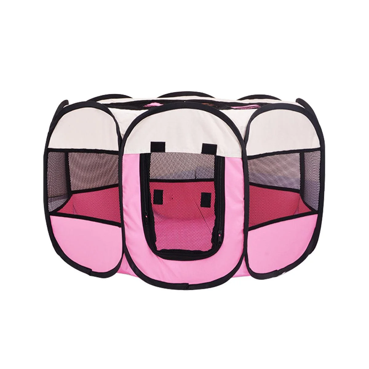 Create a safe and comfortable space for your pets with this portable and collapsible pet pen. Designed with convenience and functionality in mind, this octagonal pen is perfect for both indoor and outdoor use. Its breathable mesh design allows for good airflow, while the sturdy frame ensures durability. Ideal for both cats and dogs, this pen offers ample space for your pets to play, relax, and stay secure. Whether you're at home or on the go, this lightweight and easy-to-assemble pen is an excellent choice for your pet's needs.