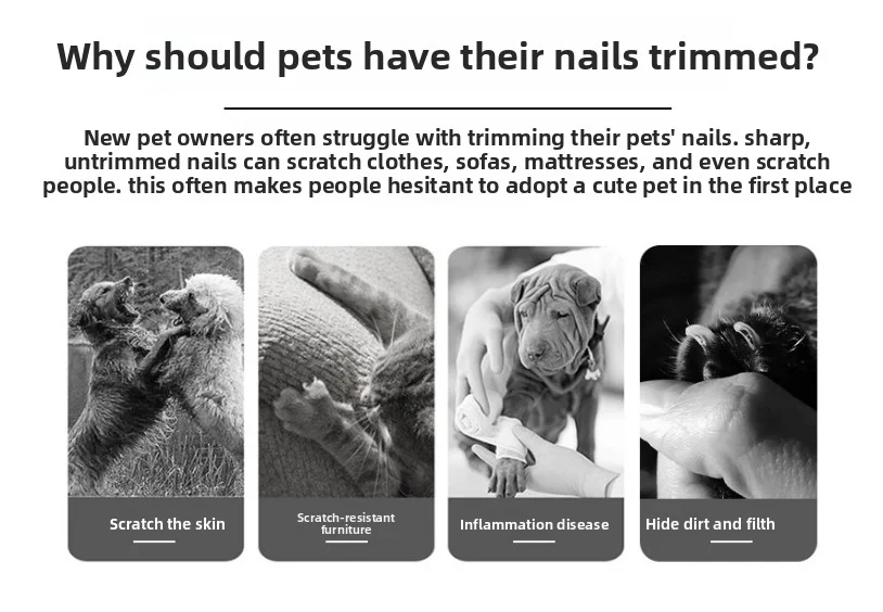 Regular nail maintenance is vital for your pet's well-being. Long nails can be painful for pets to walk on and can cause damage to your floors, furniture, and even your skin. This Pet Nail Clipper Set provides a safe and cost-effective solution for DIY grooming. The high-resilience spring assists the cutting action, reducing hand fatigue and making the process smoother for both you and your pet.