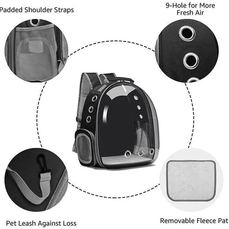 This stylish pet carrier backpack features a transparent space capsule design that allows your pet to enjoy the view during travel.Crafted from waterproof oxford cloth and solid ABS plastic, it provides comfort, ventilation, and durability for outdoor adventures.With breathable mesh panels and multiple ventilation holes, it keeps your pet cool and secure on the go.Suitable for small cats and dogs up to 13 lbs, ideal for hiking, commuting, or everyday outings.