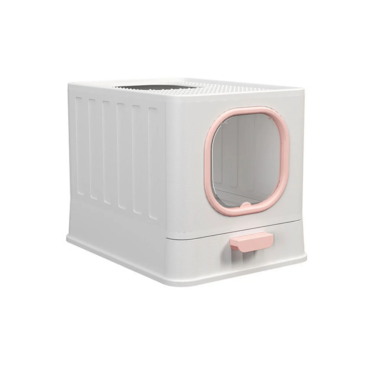 This fully enclosed litter box provides your cat with a private and hygienic space for their needs. The compact and sleek design is perfect for keeping your living area clean while also providing your pet with a comfortable environment. Featuring a smooth plastic surface that is easy to maintain, this litter box helps minimize odors and prevents litter from being scattered outside. The box also includes a convenient pull-out tray for easy cleaning, making it a practical choice for both you and your cat.