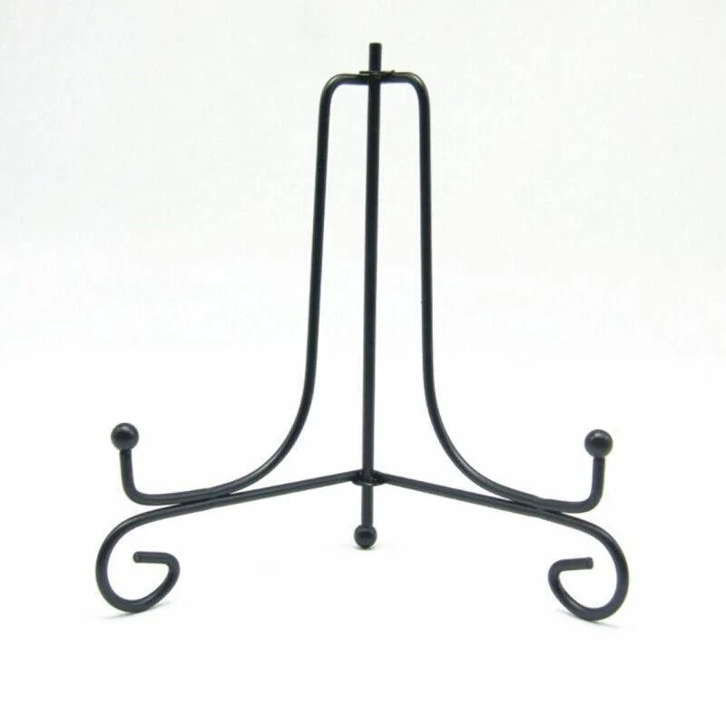 Enhance the elegance of your home or office décor with these versatile black iron plate stands. Designed to hold a variety of items from plates, pictures, books and bowls to valuable artwork, these stands are an essential addition to any decorator's collection. Crafted from sturdy and high quality iron, they promise both durability and refinement. Adjustable folding hinges allow them to adapt to different sizes, ensuring your items are displayed at the best angle. Whether it's a treasured family photo, a beautiful plate from your travels or your latest artwork, these stands will provide the perfect support. With sizes ranging from 4 inches to 12 inches, you're sure to find the perfect fit for every item.