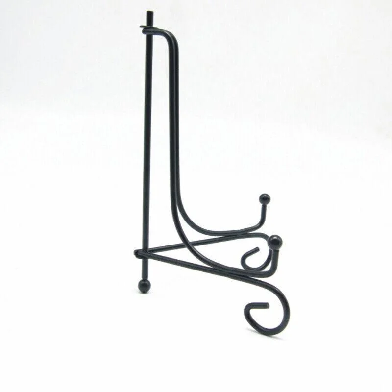 Enhance the elegance of your home or office décor with these versatile black iron plate stands. Designed to hold a variety of items from plates, pictures, books and bowls to valuable artwork, these stands are an essential addition to any decorator's collection. Crafted from sturdy and high quality iron, they promise both durability and refinement. Adjustable folding hinges allow them to adapt to different sizes, ensuring your items are displayed at the best angle. Whether it's a treasured family photo, a beautiful plate from your travels or your latest artwork, these stands will provide the perfect support. With sizes ranging from 4 inches to 12 inches, you're sure to find the perfect fit for every item.