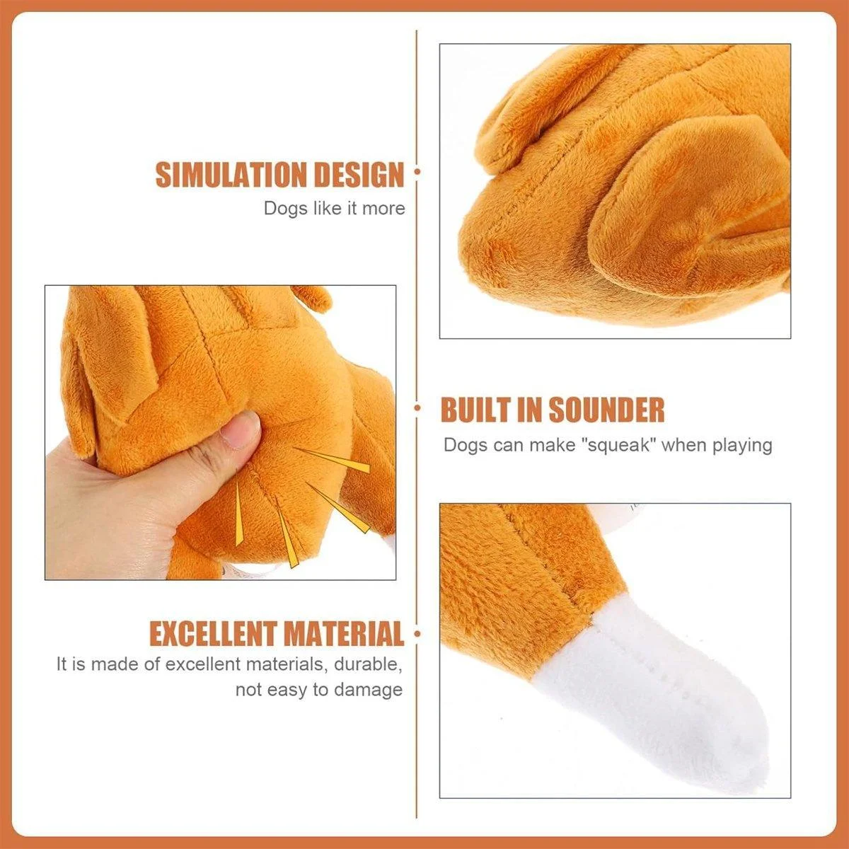This plush roasted chicken dog toy is an engaging and fun companion for your pet. Crafted with high-quality materials, it is both soft and durable, ensuring hours of entertainment. The built-in sounder makes a squeaking noise when pressed, stimulating your pet’s curiosity and keeping them active. The realistic design and soft stuffing make it perfect for cuddling or playing fetch. It is lightweight and easy to carry, making it a delightful gift for pets of all sizes.