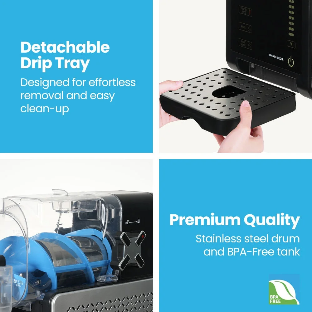 Behind the scenes, a quiet yet powerful motor and high-efficiency copper condenser chill ingredients down to -17C for an ultra-smooth, refreshing texture. And with the intuitive touchscreen controls, you're always in charge of the chill factor. Just pour in your chosen liquid, select a drink type, and enjoy silky slushies made from juice, soft drink, dairy, coffee - or your favourite cocktail mix.