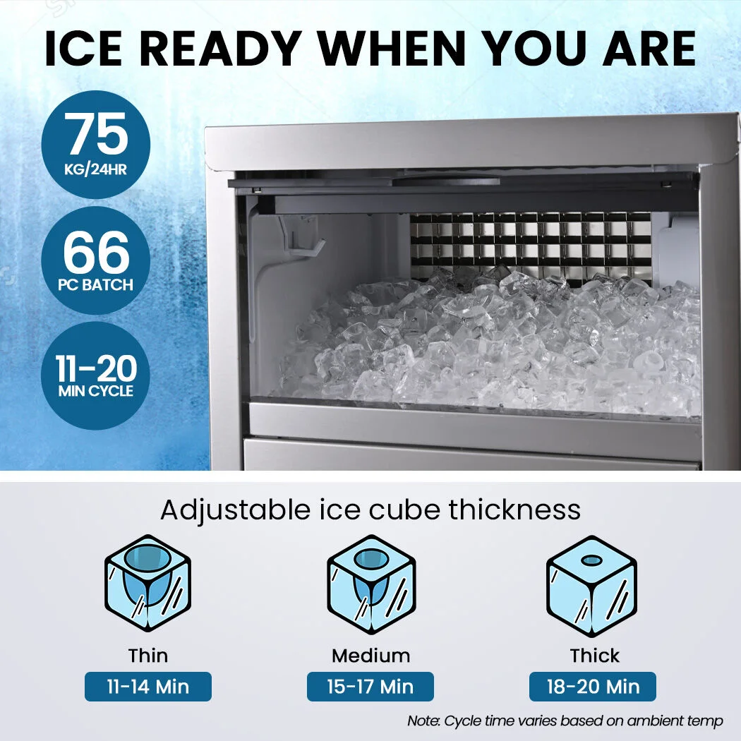 - Delivers up to 75kg of crystal-clear ice cubes every 24 hours