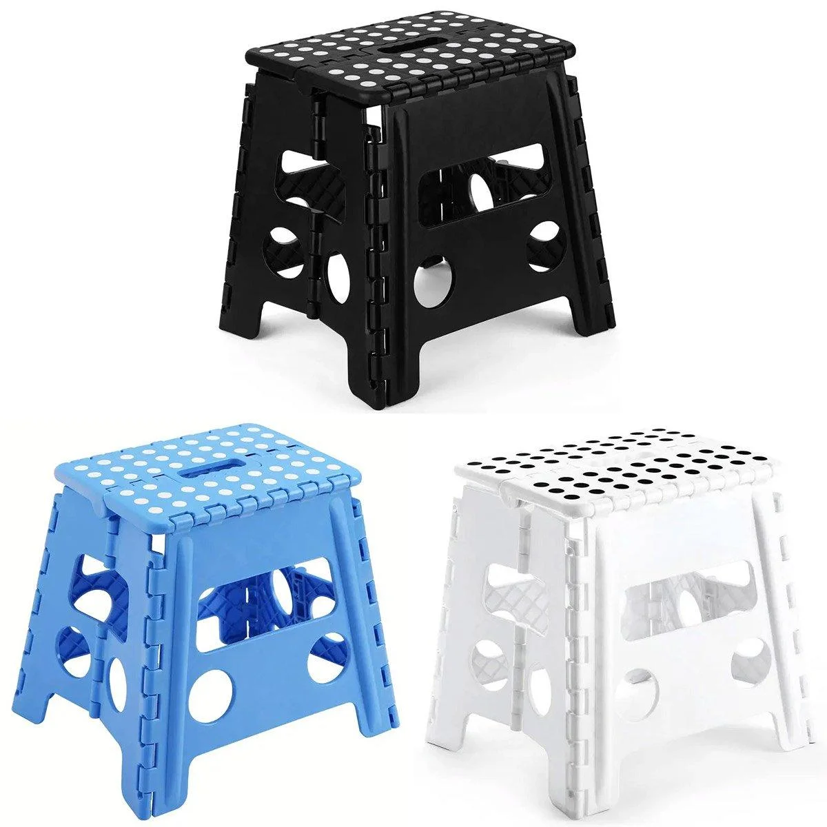 This portable plastic folding stool is a versatile seating solution for both home and on-the-go use. With its durable construction, compact foldable design, and 13-inch height, it offers reliable support for adults and children. Whether you need a step stool in the kitchen, extra seating in the bathroom, or a lightweight chair for outdoor activities, this stool is up to the task. It supports up to 300lbs and features non-slip feet for added safety. Available in three stylish colours, it fits seamlessly into any home decor.
