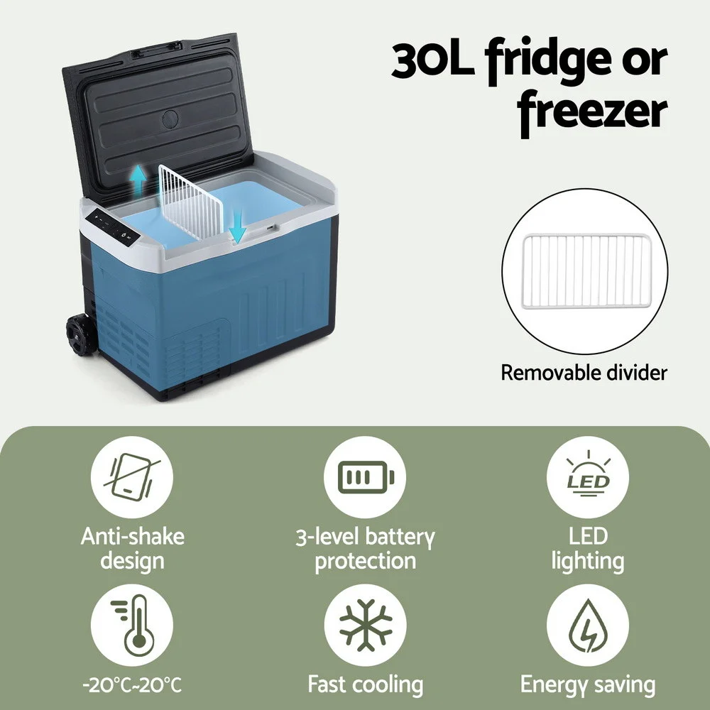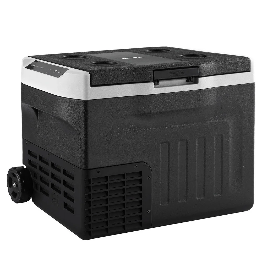 In the market for a portable fridge or freezer? Our exceptional Portable Fridge/Freezer is one cool device with extraordinary performance. Perfect for use on the road or indoors, the fridge easily plugs into any 12V, 24V or 240V power point for the powerful compressor to kick in its cooling prowess. A simple LCD with even simpler operational setting allows you to start the refrigeration process easily: just turn on the power, set the temperature, and the genuine compressor will do the rest. The compressor is very energy-efficient,offering ECO and MAX cooling modes about 1.32kWh for every 24 hours of use. When running on DC power, the battery has 3-stage charging protection that cuts off charging once the voltage setting is attained to ensure longer-lasting battery life. The fridge has plenty of space for all your food and drinks, and you can adjust the temperature down to -20 ?. The heavy-duty exterior is designed to handle all the knocks and bumps of a road trip and comes with 4 cup holders on the top lid, plus easy carry handles,retractable handle and off-road wheels for portability. With so much going for it, our Portable Fridge/Freezer is surely your choice of a reliable cooler for all your outdoor (or indoor) escapades.
