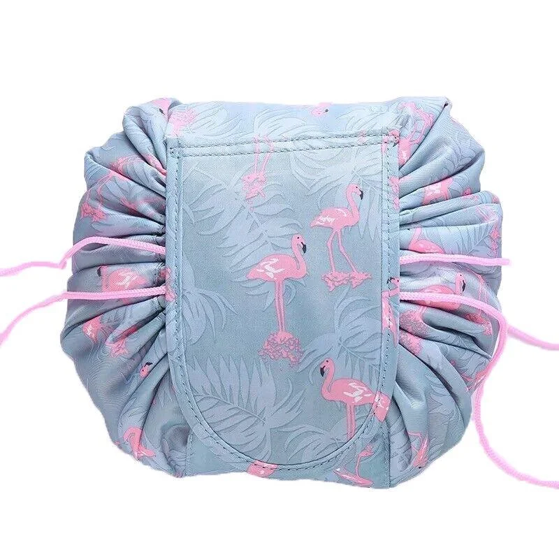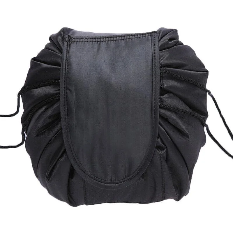 Opens flat for full access; cinch the drawstring to close and convert to a clutch