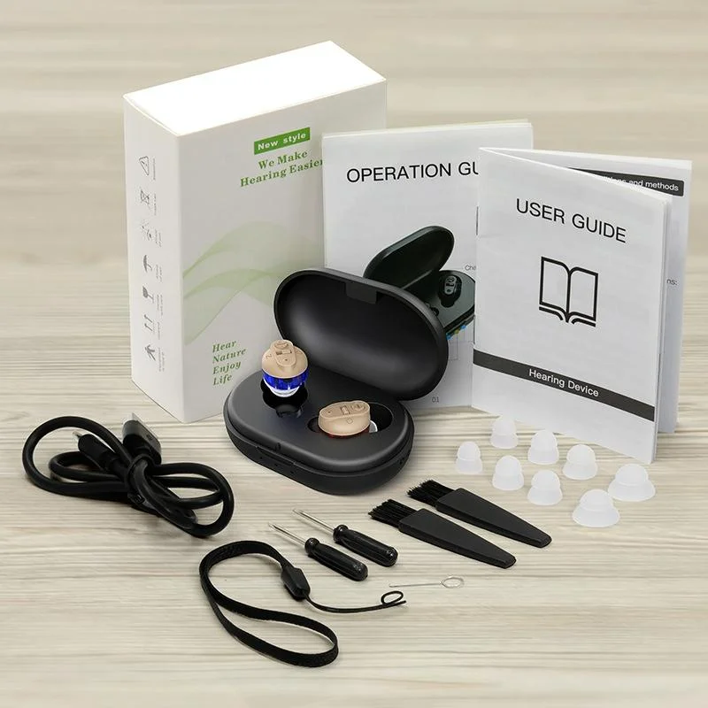 Digital Hearing Aid With Display & Charging - Red Blue + Black Compartment