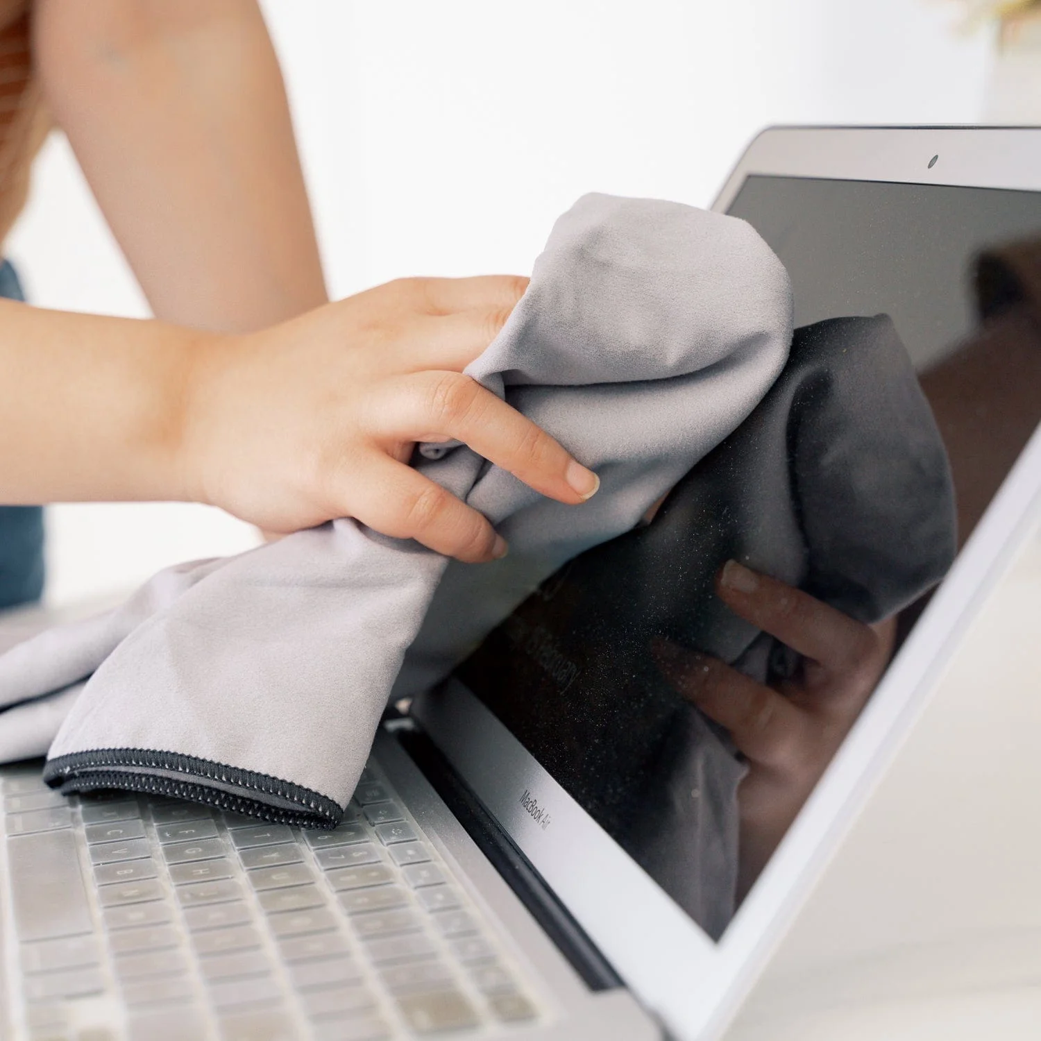 Premium microfibre cloth attracts lint and dust.
