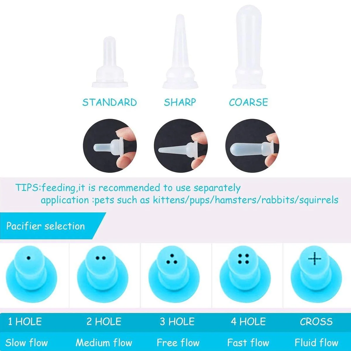 Multiple Nipple Sizes: Comes with different nipple sizes to accommodate pets of various sizes and ages.