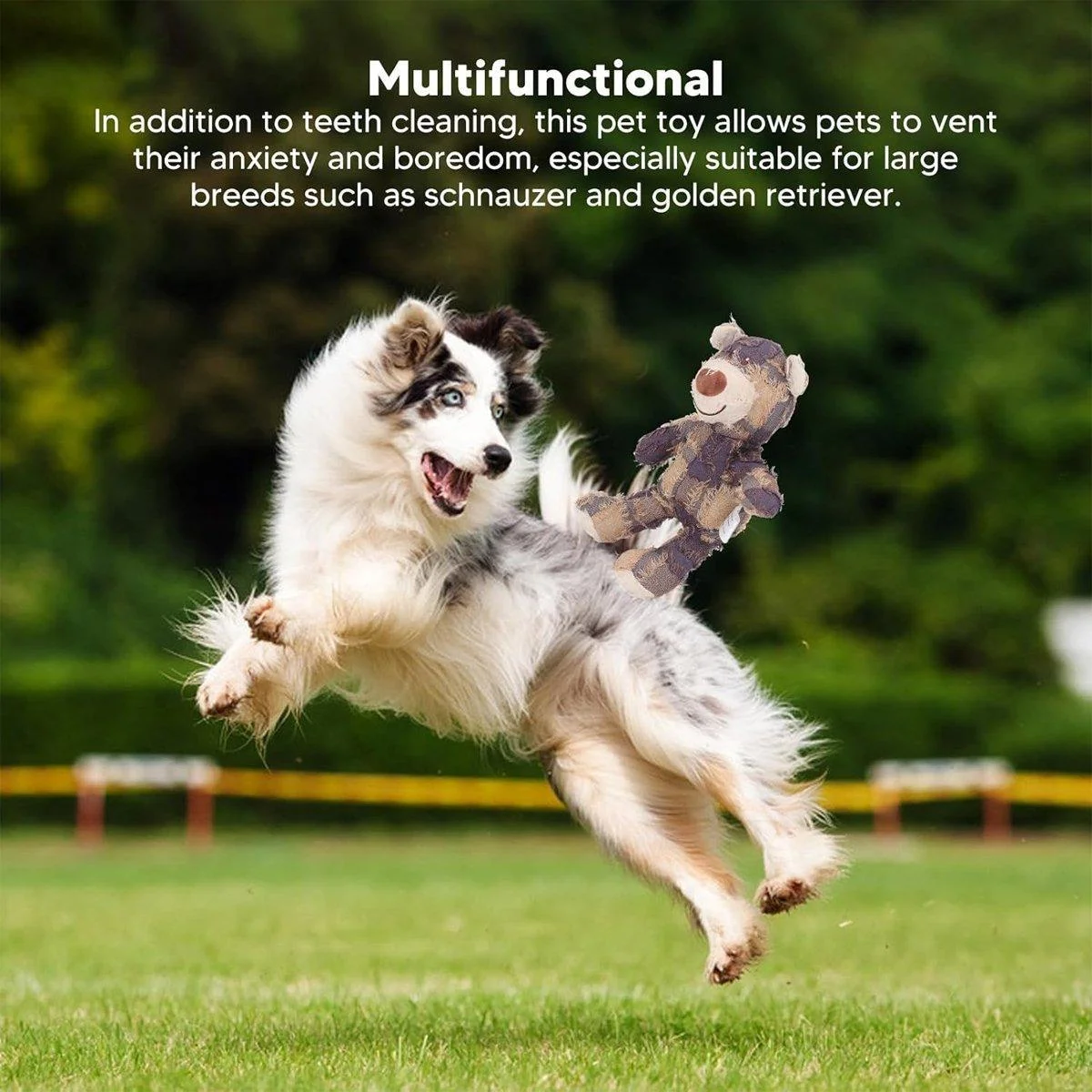 This plush puppy toy is designed for gentle play, comfort, and companionship—ideal for small dogs and puppies. Featuring a fun squeaker inside, this soft stuffed bear adds joyful interaction to your pet’s day. Please note: this toy is not designed to withstand strong biting or aggressive chewing. It is best suited for light nibbling, carrying, and cuddling. If your pet tends to chew intensively, we recommend choosing more durable rubber or nylon chew toys.