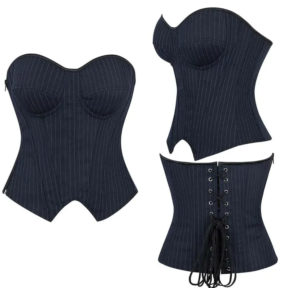 Translucent Vintage Corselet Plus Size Mesh Overbust Bustier For Women 13 Plastic Bones Lace-Up Closure Summer Crop Top - L