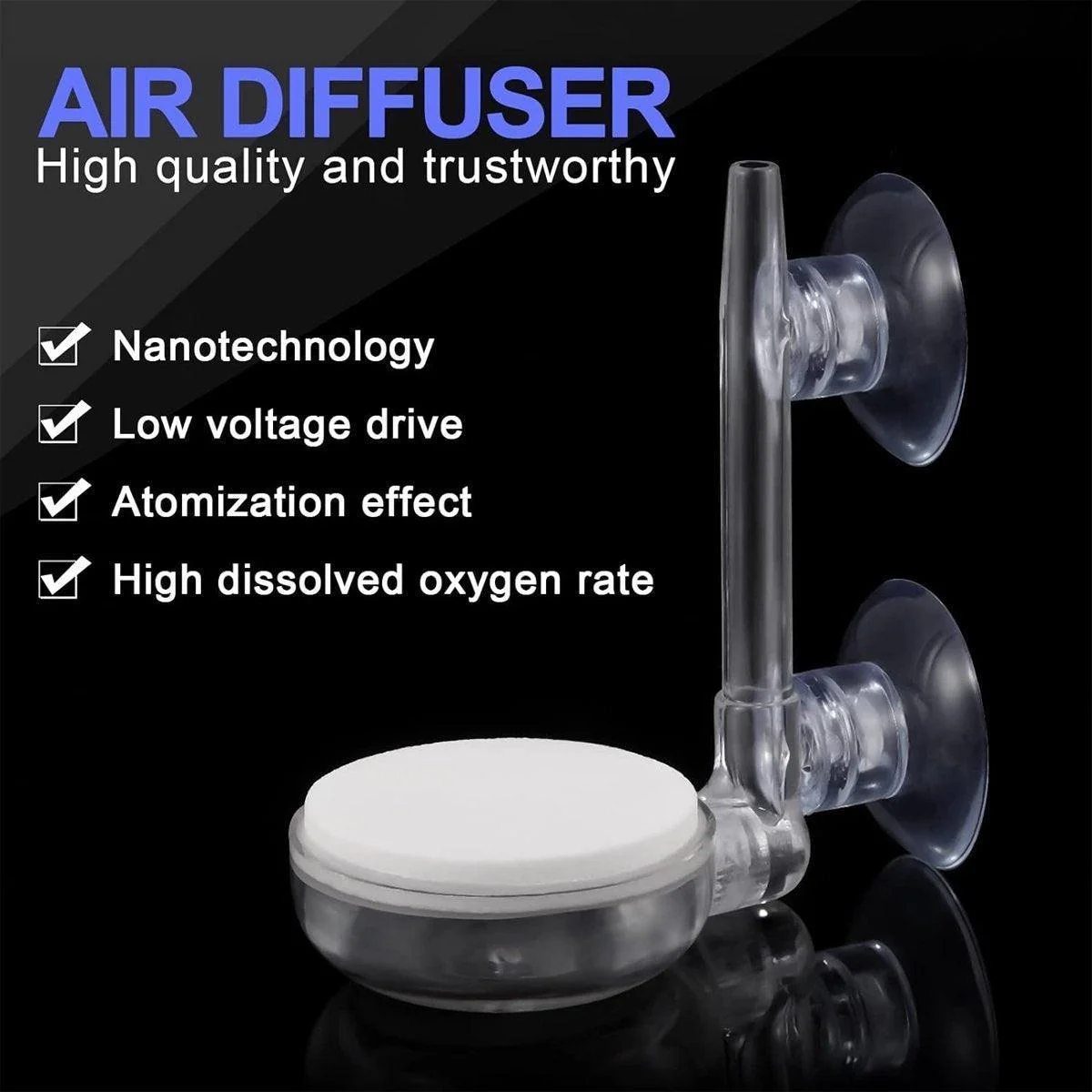 Enhance your aquarium with our Bubble Stone Aerator Head, designed to improve the oxygenation and overall health of your fish tank. This nano air disc atomizer delivers fine, uniform bubbles that efficiently dissolve oxygen in the water, creating a healthier environment for your aquatic pets. Made with high-quality materials and featuring a low voltage drive, this air stone is both safe and reliable. The adjustable bubble size and quiet operation make it perfect for any aquarium setup, whether you have a small home tank or a larger display.