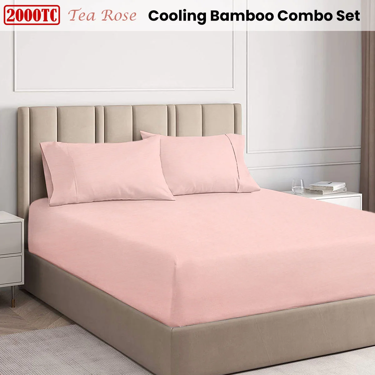 The Tea Rose 2000TC Cooling Bamboo Combo Set by Ramesses offers the perfect blend of luxury and comfort. Bamboo sheets are known for its incredible softness and durability. It aims to resist stains and wrinkles for easy care. It is eco-friendly, highly absorbent, natural anti-bacterial and hypoallergenic. This will make it suitable for babies and toddlers as well as those adults that suffer from respiratory or skin allergies. The expanding and contracting nature of the fibers will help you stay warm in winter and cool in summer. Go ahead indulge yourself in this natural luxury!