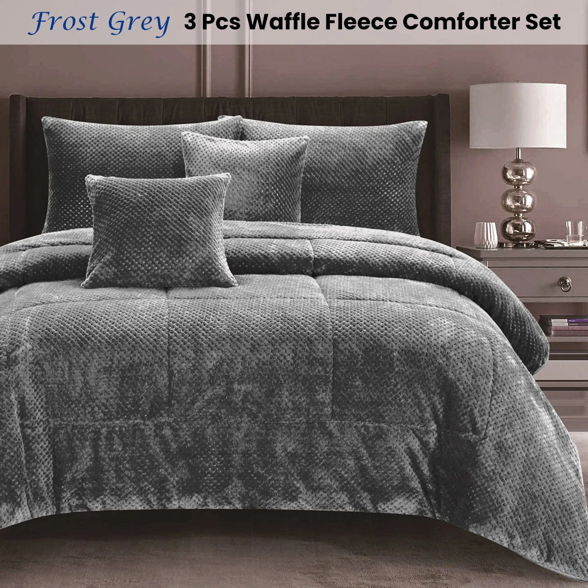 This amazingly Waffle Fleece Frost Grey 3 Pcs Warm Cozy Comforter Set by Ramesses will be your newest love! The set is presented in a platinum colorway and is perfect for those colder winter months. The unique design is made from soft waffle fleece - the perfect name for a fabric so cozy, soft and warm. You'll look forward to slipping into bed on even the coldest nights.
