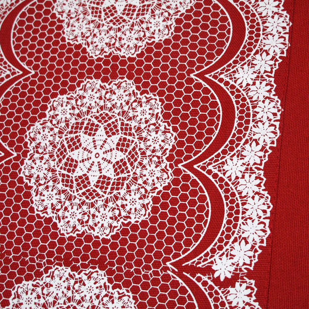 This Set of 4 Cotton Lacey Red Table Placemats 33 x 45 cm by Rapee is a practical and stylish addition to any dining table. Placemats can protect your table from spills, scratches, and heat. This placemat features timeless lace design in red and white colour tones that can enhance the dining experience. It is made from quality and easy care 100% cotton fabric for long lasting use.