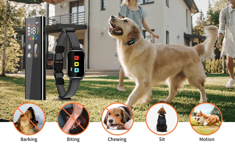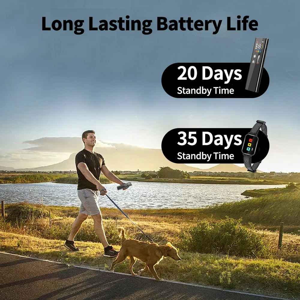 Build a better connection with your furry friend using this professional Dog Training Collar. Designed to help correct unwanted behaviors like barking, biting, and chewing, and to reinforce commands like 'sit', this system is an effective tool for dogs of all sizes (8-120lbs). It features three separate and humane training modes: beep, vibration, and static shock, all with adjustable intensity levels to suit your dog's temperament. The remote boasts a large, backlit LED screen that is clear day and night, while the compact receiver collar features its own LCD screen. With a long-range of up to 2600ft and a quick 0.01s response time, this training set is perfect for use in your backyard, at the park, or anywhere you need reliable control.