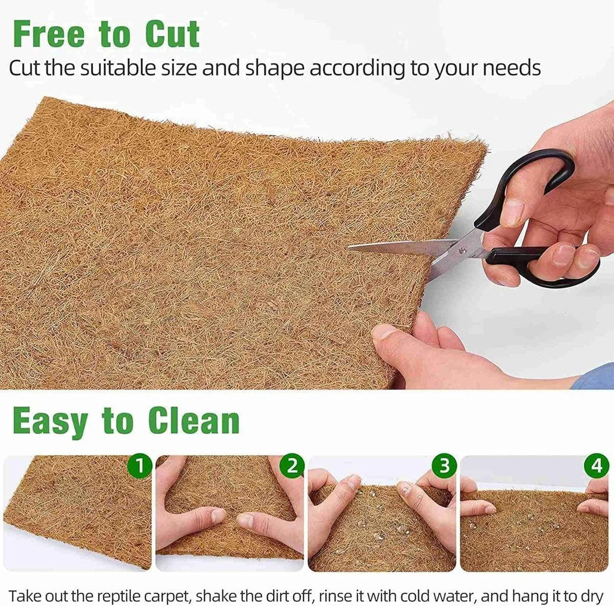 Provide your pet with a natural, comfortable, and healthy environment with this versatile and durable coconut fiber reptile carpet. Perfect for terrariums, cages, or as a cozy pet rug, it enhances the habitat while ensuring your pet's comfort and well-being.
