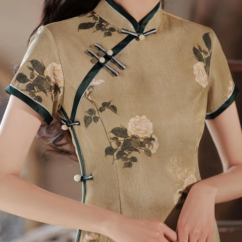 Elegant Design: Beautiful floral patterns enhance the traditional cheongsam style.