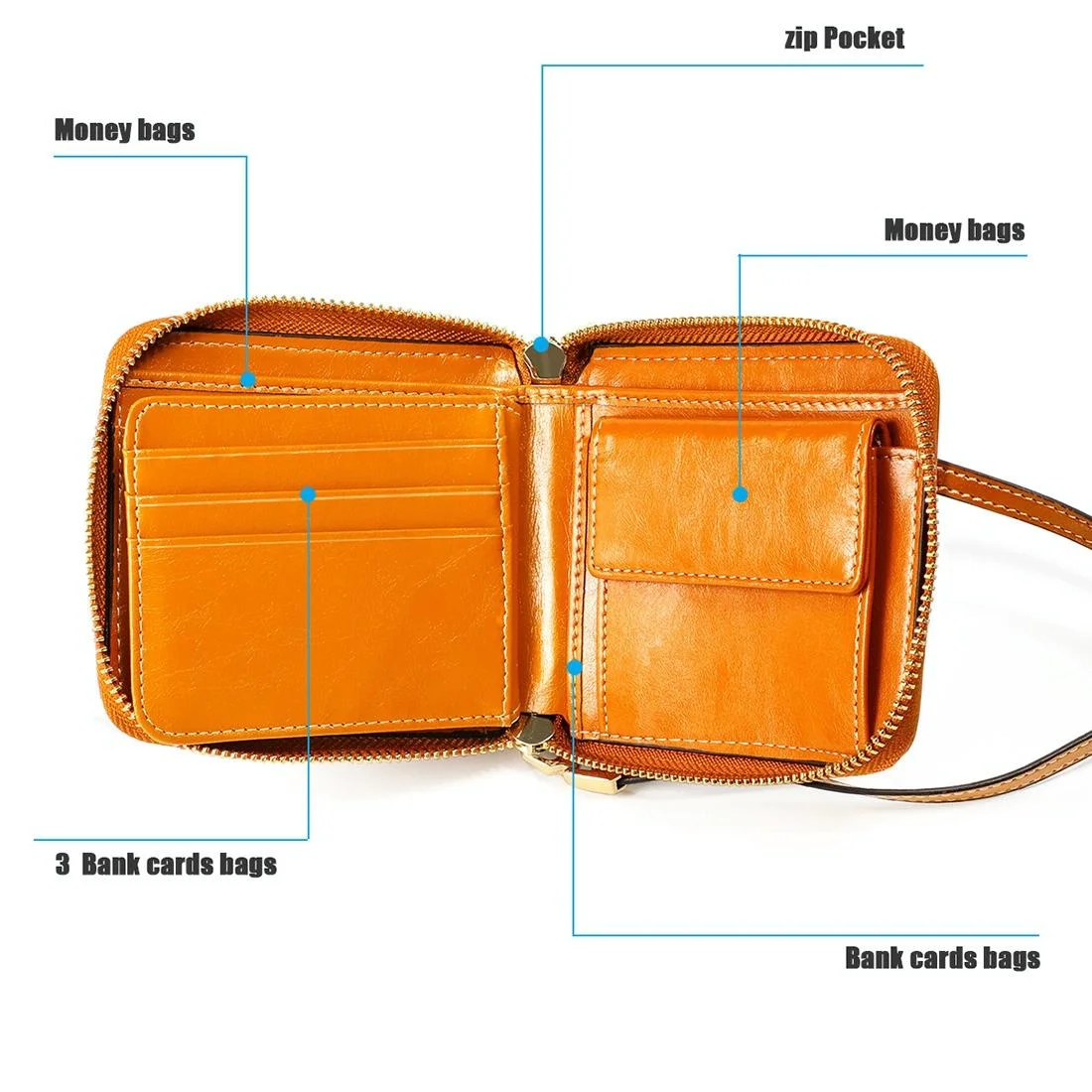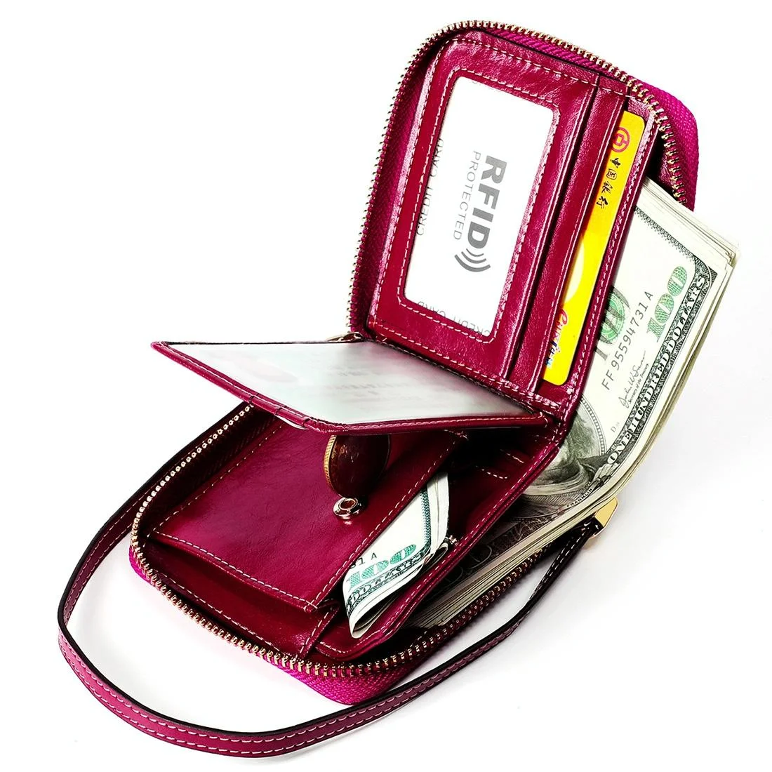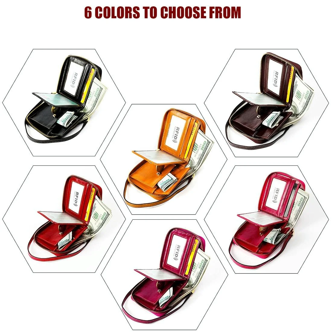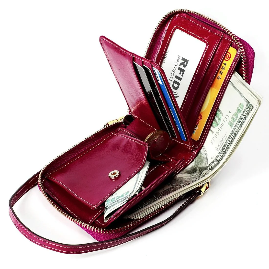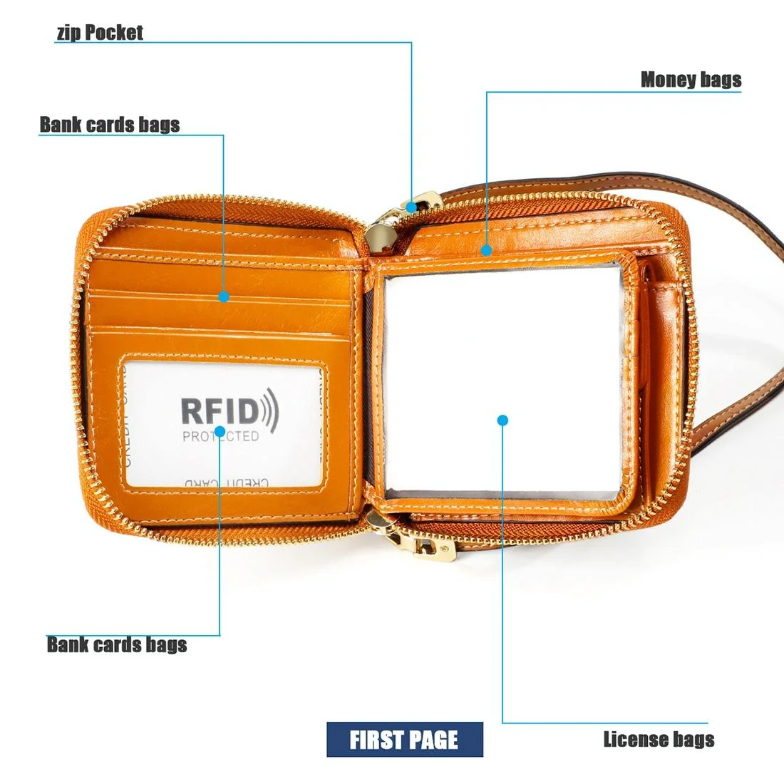Women Cowhide Leather Rfid Wallet - Horizontal Design - Coffee