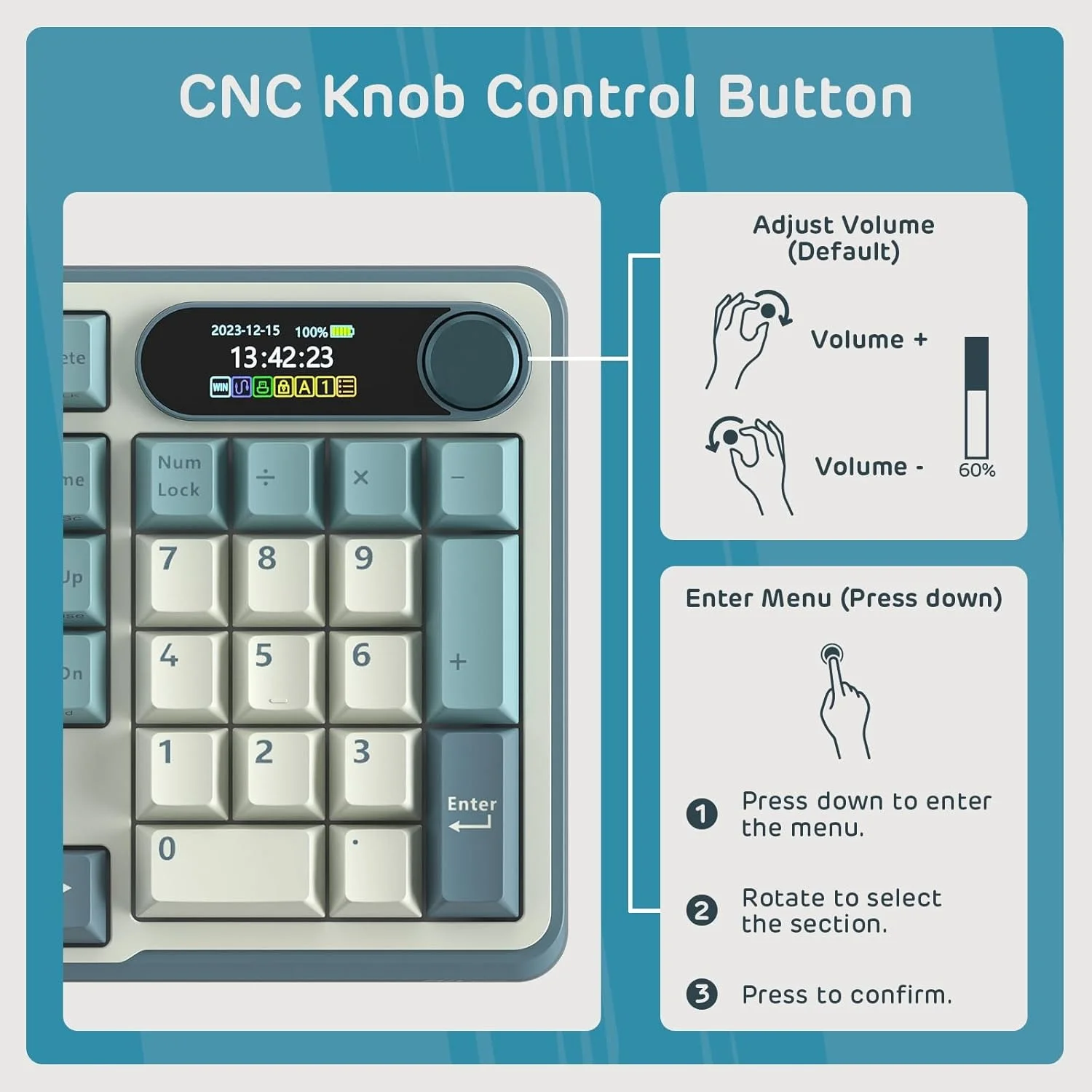 Intuitive Knob Control - Effortlessly tweak volume, connection modes, backlit brightness/speed, RGB modes/colors with a simple twist or click of the knob.