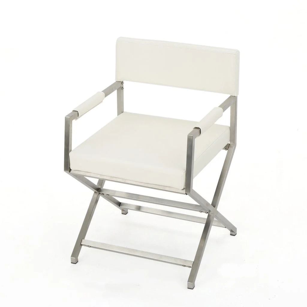 The Rocklin White Leather Armchair provides modern style with simple comfort. White Bonded leather and stainless steel frame make it ideal for any modern interior.