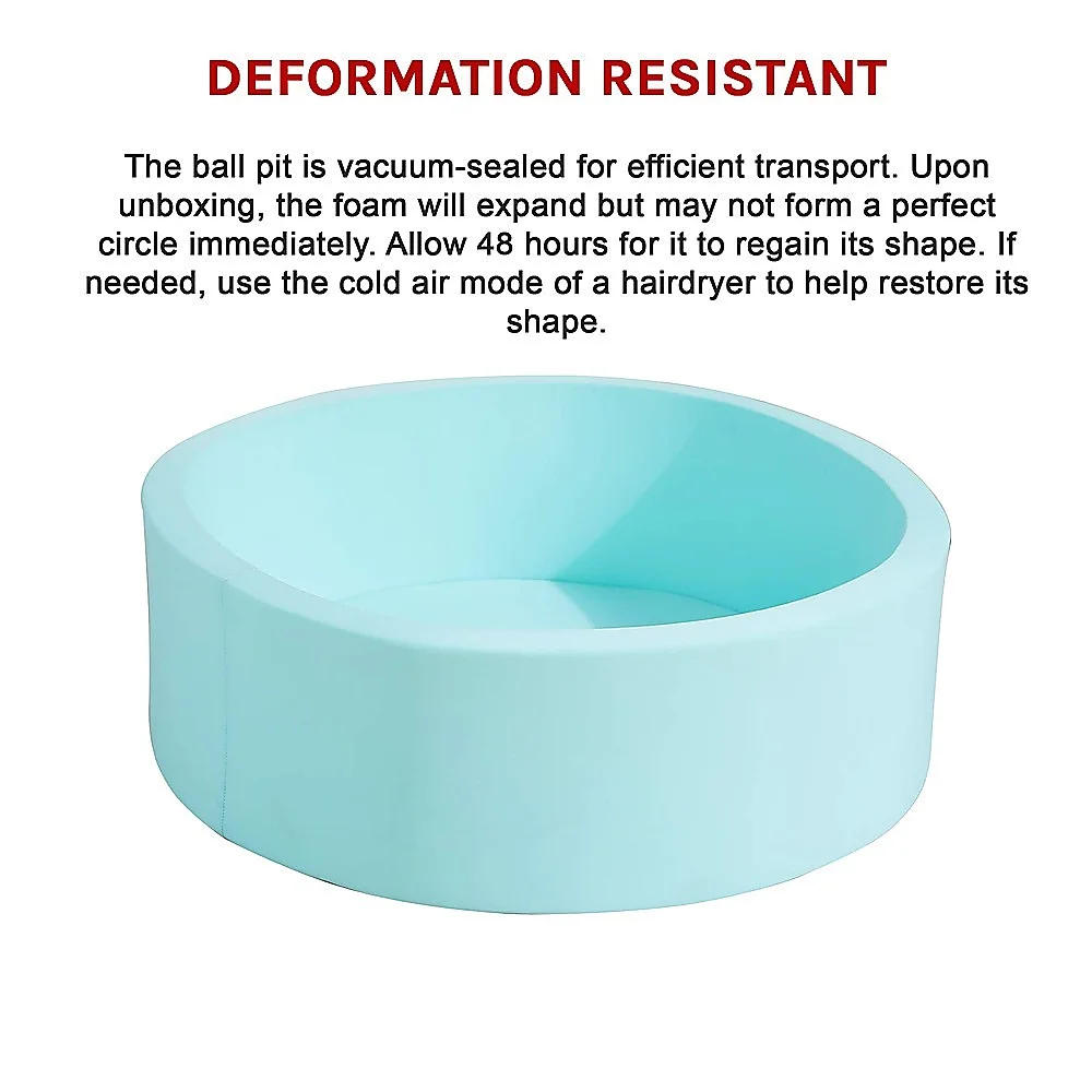 The ball pit is vacuum-sealed for efficient transport. Upon unboxing, the foam will expand but may not form a perfect circle immediately. Allow 48 hours for it to regain its shape. If needed, use the cold air mode of a hairdryer to help restore its shape.