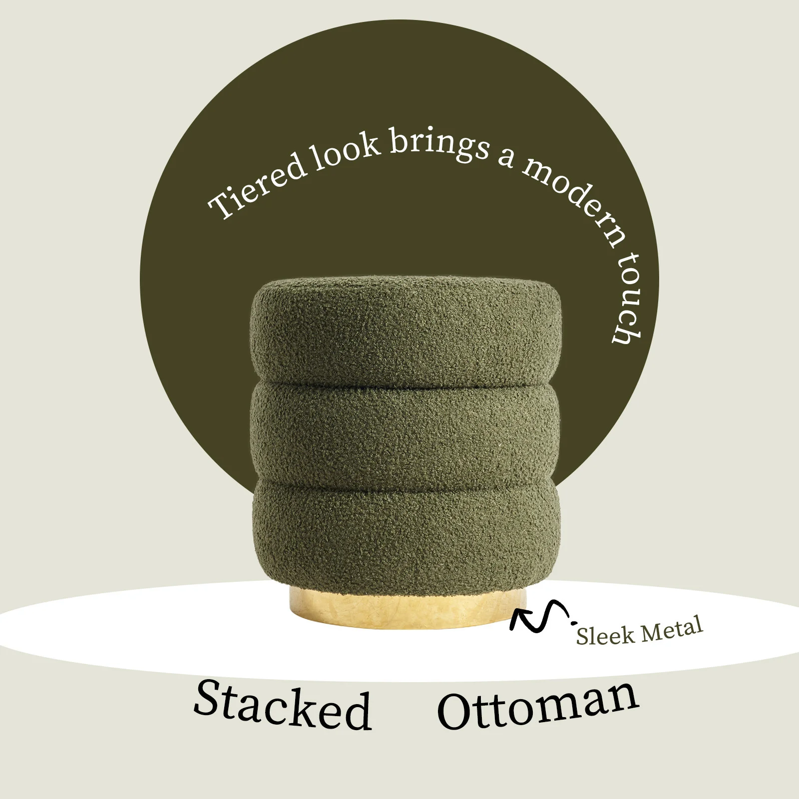 Bring a burst of style and sophistication to your home with this eye-catching round ottoman! With its stacked, cushion-like design, this ottoman makes a bold, modern statement that is sure to turn heads in any room.