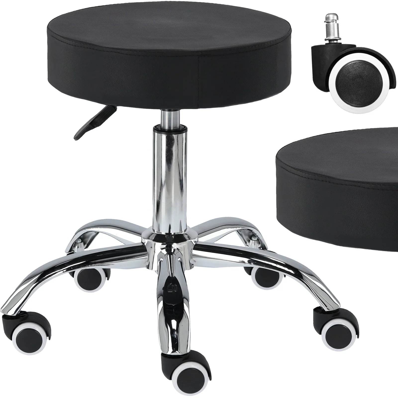 This Salon Stool is a height-adjustable rolling pedicure chair designed for beauty and hairdressing salons, tattoo parlours, and massage clinics. Its soft PU leather round cushion and strong metal frame allow for 360 degree swivelling, plus the adjustable height ensures versatility and easy manoeuvring due to its wheel-mounted feature.