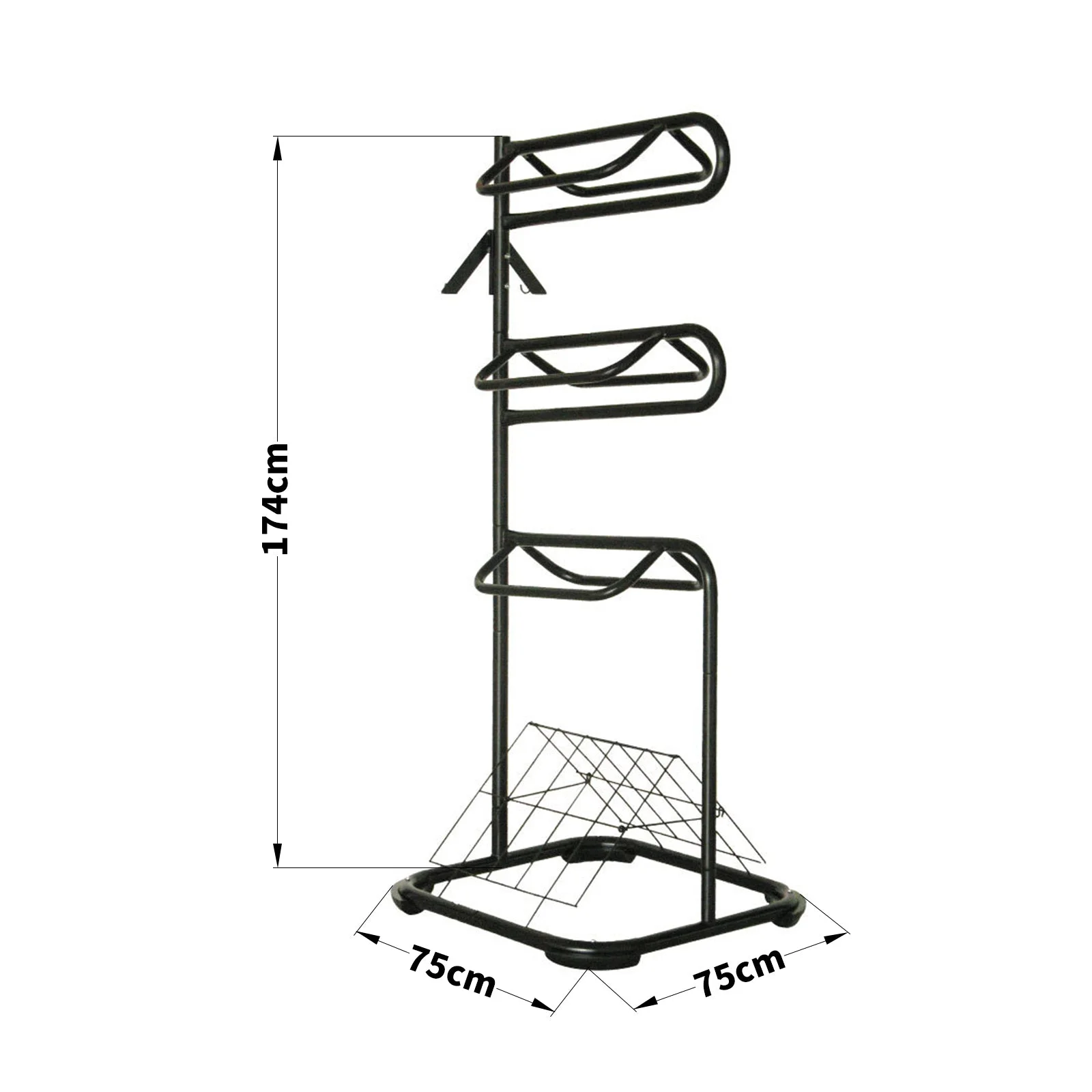 This Three Tier Saddle Rack with Vented Blanket Rack will keep your equipment secure and neat. The top two tiers are rotatable, you can put on and take off all types of saddles effortlessly. The large space design between the shelves allows air circulation.