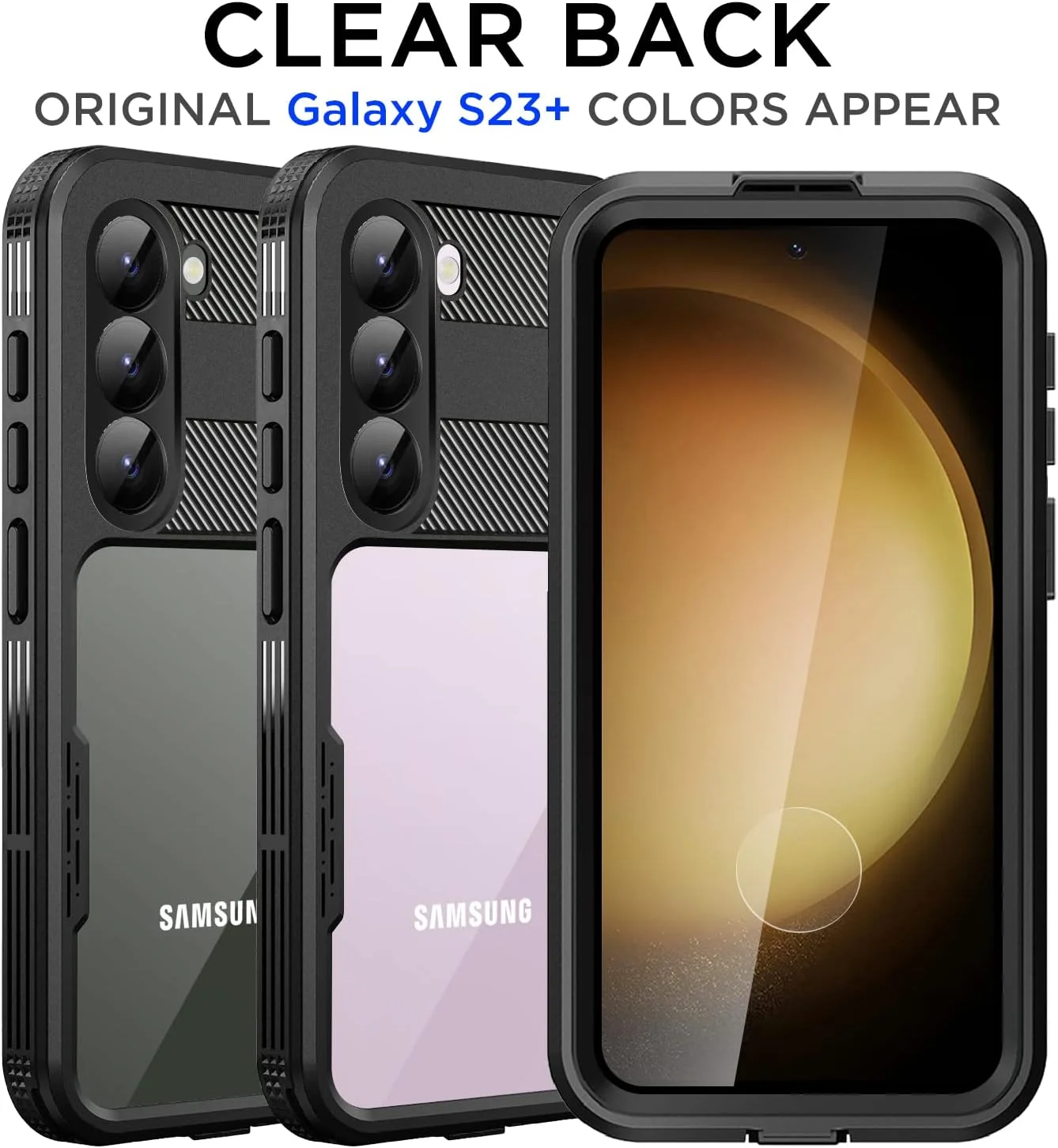 【360 Full Body Protection】shockproof Samsung Galaxy S23 Plus Case is certified to exceed Military Grade Drop Test standards and survive drops up to 6 feet (3.6m).2.5mm raised screen edge and 0.5mm raised camera edge provide extra protection for your phone screen and camera.