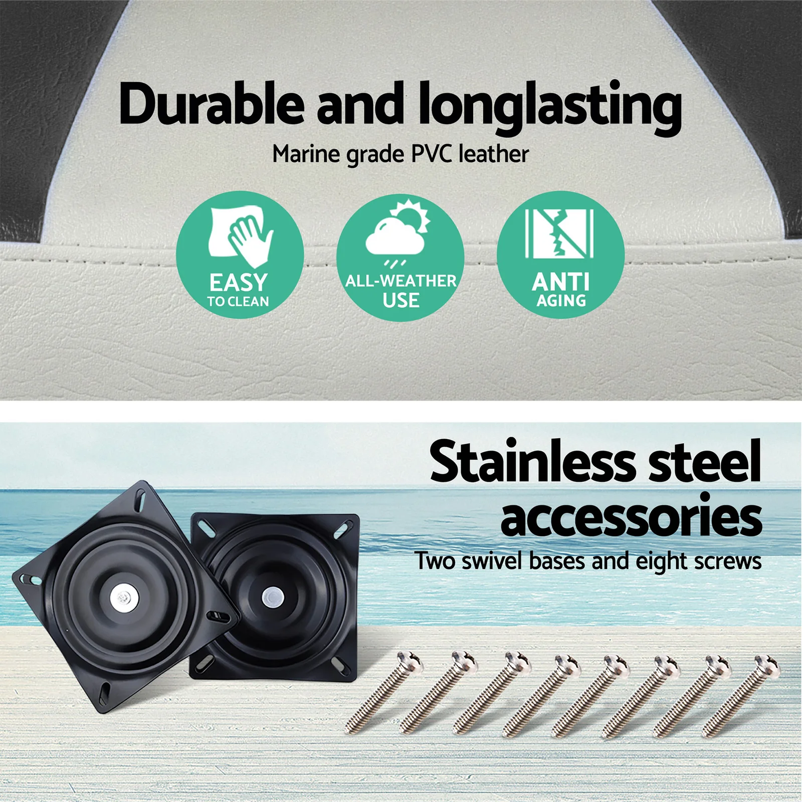 The thick backrest and seat padding help make cruising the waters comfortable and relaxing while the robust, rust-resistant alloy hinges and stainless steel hardware keeps the pair looking stylish and working good always. The seats can be swivel for added convenience and easily folded away when not is use to preserve their condition.
