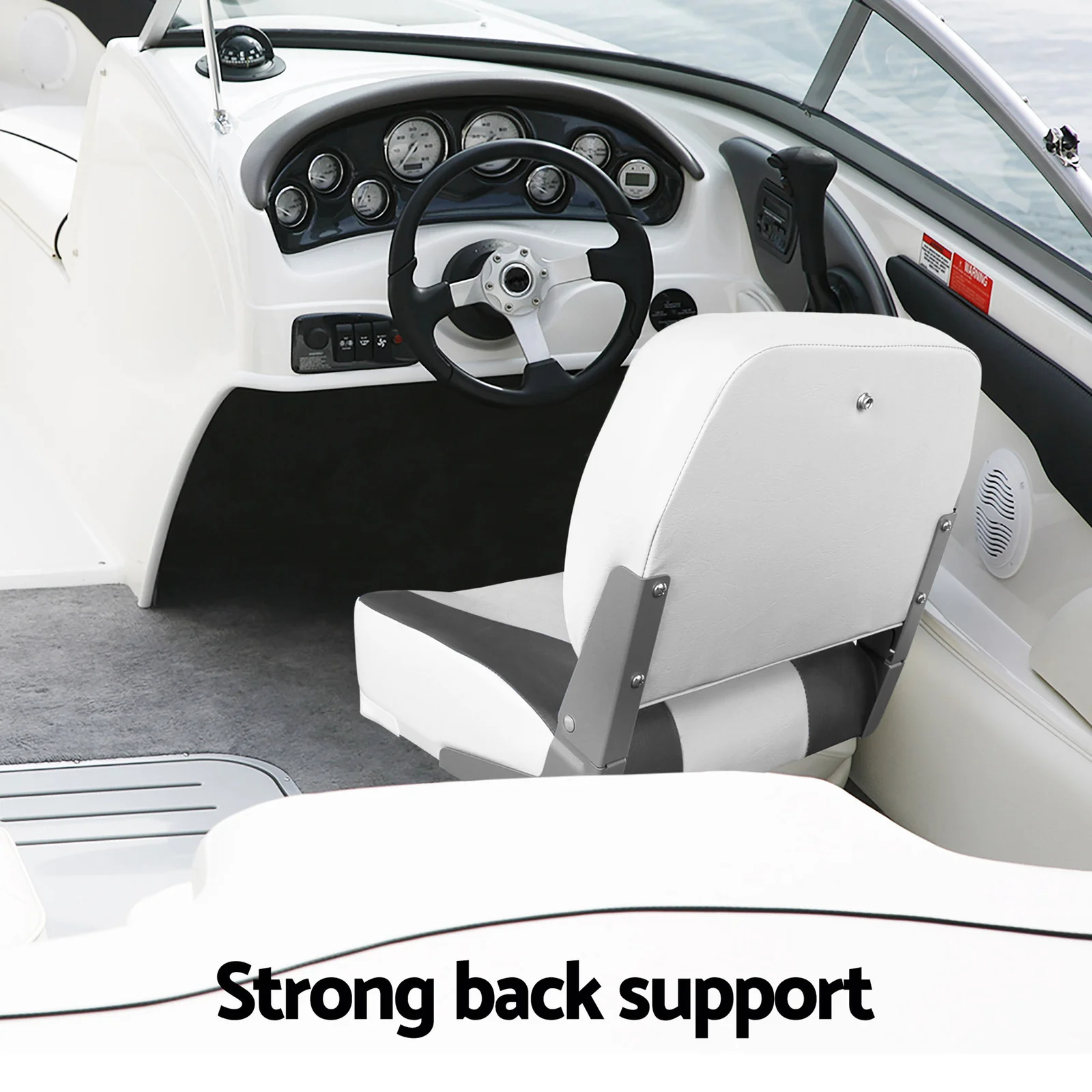 Have more fun with this complete 2-person boating package from Seamanship. This 2-Pack Set includes two folding boat seats and two 34–46cm adjustable gas lift swivel pedestals—everything you need for professional-grade onboard seating. Made of high quality premium plastic and UV-resistant PVC, these Boat Seats are made to perform in all-weather conditions. The wind, the rain and the sun and even salt water do them no harm.