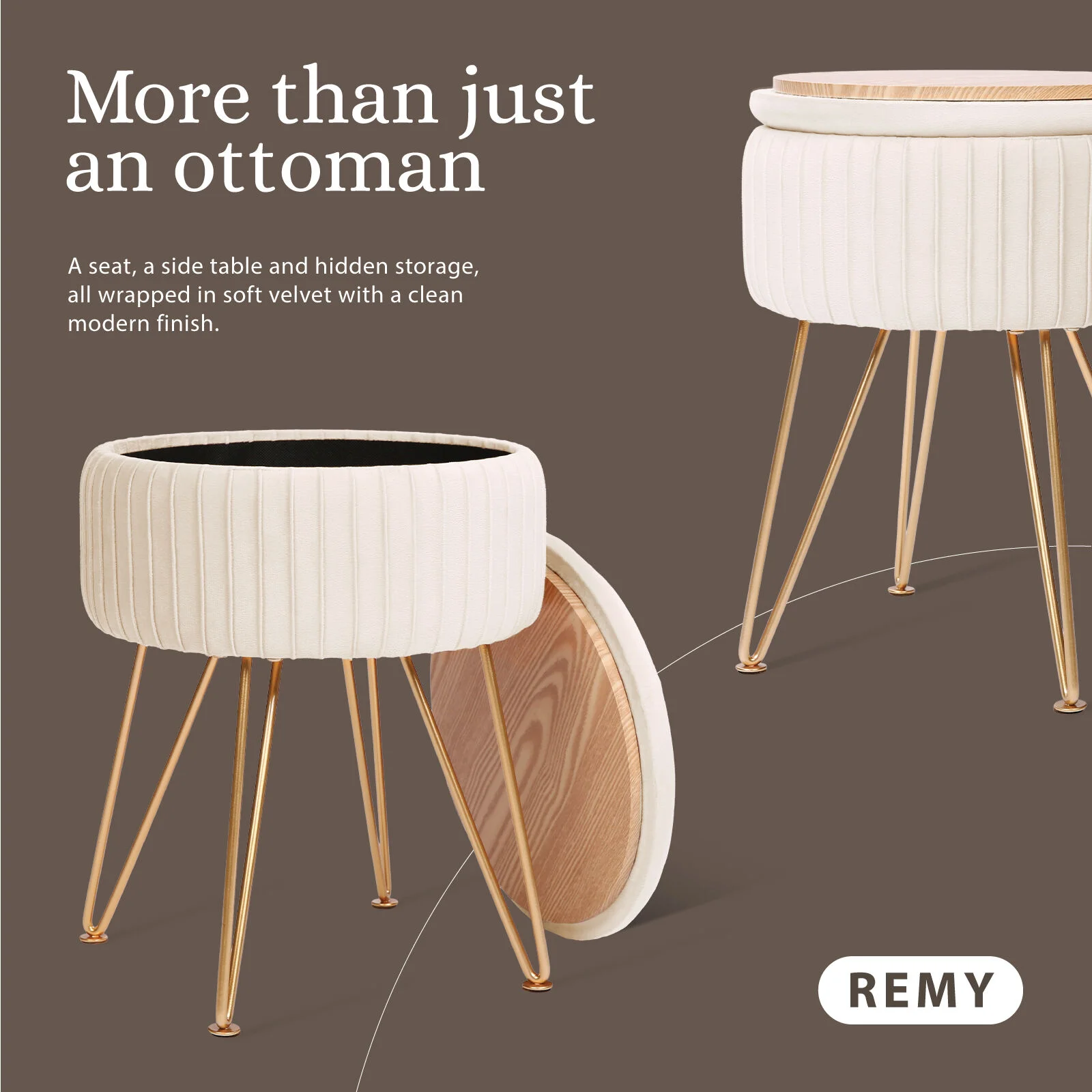 This velvet ottoman is a stylish solution for keeping things neat while adding a touch of elegance to your space. It also serves as a handy side table for everyday essentials.