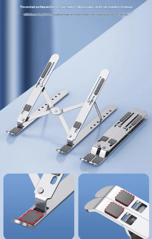 - Sturdy & Stable Construction: Made from premium aluminum alloy, this stand is incredibly durable and can support up to 20kg. The stable triangular structure and non-slip silicone pads keep your laptop securely in place and protect its surface from scratches.