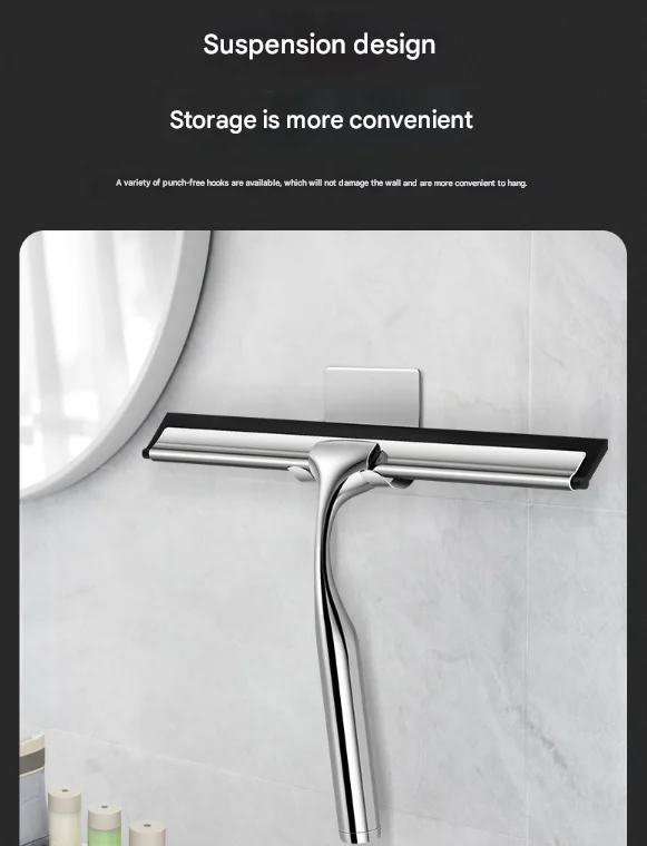 - Durable & Elegant Construction: Crafted from a high-quality zinc alloy handle and a 304 stainless steel blade clip, this squeegee is rust-proof, durable, and built to last. The sleek, mirror-polished finish adds a touch of modern elegance to your bathroom.