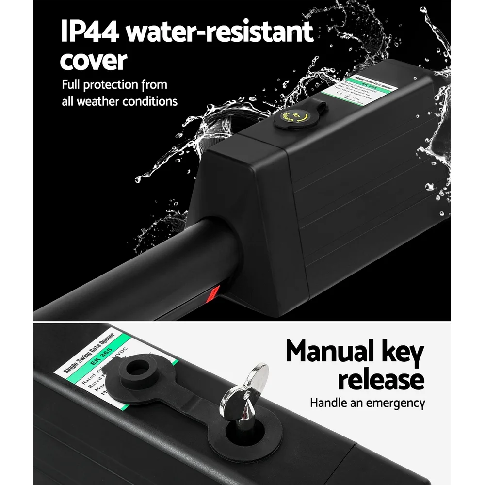 Introducing our Gate Opener, designed for effortless and eco-friendly gate control. This advanced system ensures a smooth operation with gentle start and stop features, enhancing the lifespan of your gate. Safety is paramount; it automatically stops or reverses upon detecting any obstruction, ensuring peace of mind. Equipped with an emergency release key for power failures and a programmable auto-close feature, it offers convenience at your fingertips. Included remote control makes access seamless and secure.