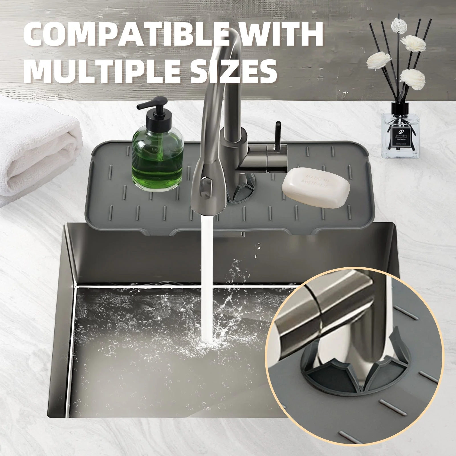 The silicone faucet handle drip tray comes in a large size: 36 × 14 × 0.6 cm.