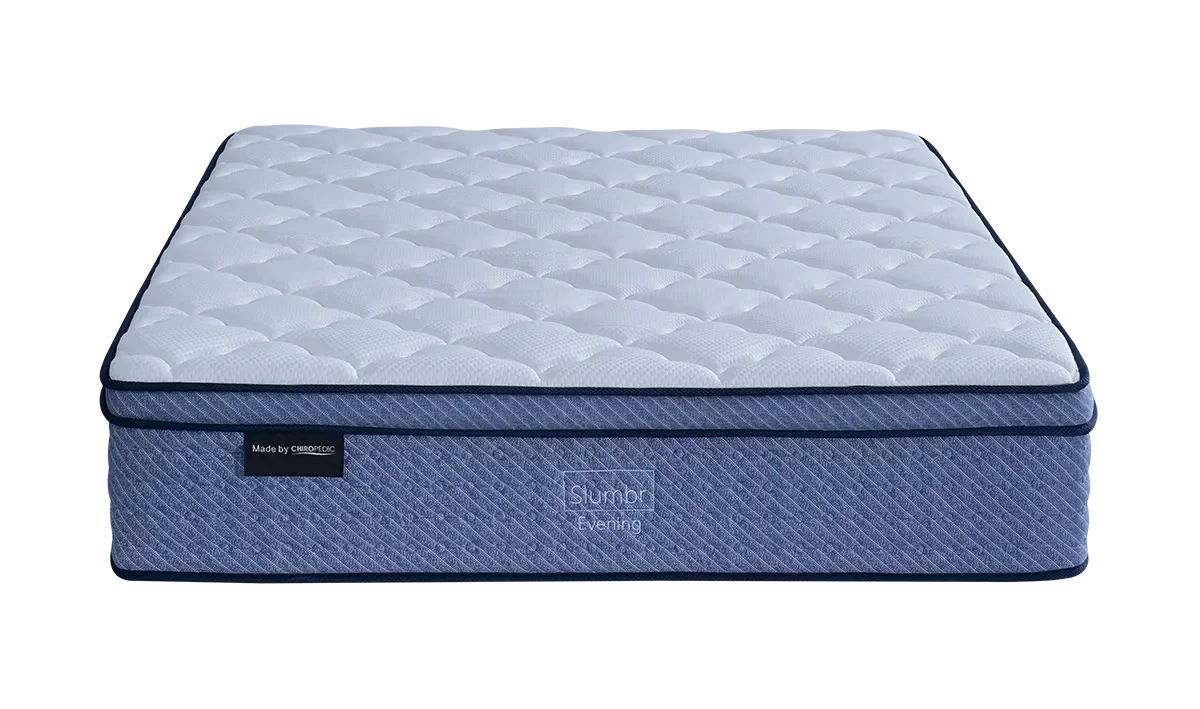 The Slumbr Evening mattress offers a luxurious sleep foundation with its 350gsm knitted fabric cover, providing a plush, breathable, and durable surface. This high-quality outer layer keeps the mattress feeling fresh and inviting while promoting airflow and longevity. Directly beneath the cover is a 100gsm Dacron insulation layer, engineered to provide a balanced sleep temperature. This insulation offers warmth during colder nights and enhances airflow in warmer months, creating an ideal sleep setting year-round. At the heart of the Slumbr Evenings comfort is a 3cm layer of high-density foam, which provides gentle support that adapts to your bodys contours. This foam layer eases pressure on areas like the shoulders, hips, and lower back, ensuring you wake up without soreness. Alongside it, a 2cm layer of gel memory foam enhances comfort with its cooling properties, reducing heat build-up and adapting to your movements throughout the night. For advanced support, the Slumbr Evening mattress includes a high-profile pocket spring system. Each spring adjusts individually to your bodys weight and shape, distributing weight evenly and minimizing motion transfer. This system not only offers excellent body contouring but also features anti-roll firm side support springs, ensuring stability and adding longevity to the mattress. This mattress delivers a medium comfortlevel, striking the perfect balance between softness and support, catering to those who seek comfort without compromising spinal alignment. Youll enjoy restful, uninterrupted sleep and wake up feeling rejuvenated. With a commitment to quality, the Slumbr Evening mattress includes a 7-year warranty, giving you peace of mind with a product thats built to endure. This mattress promises to maintain its superior quality and support over years of use, making it a sound investment in your sleep health. Chiropedic Mattress Factory Direct has over 30 years of experience proudly making 100% Australian-made mattresses. Awarded for excellence and innovation, Chiropedic holds exclusive patents in sleep technology, ensuring superior comfort and support. With trusted quality, factory-direct value, and a commitment to better sleep, Chiropedic is Australias leading mattress manufacturer. |