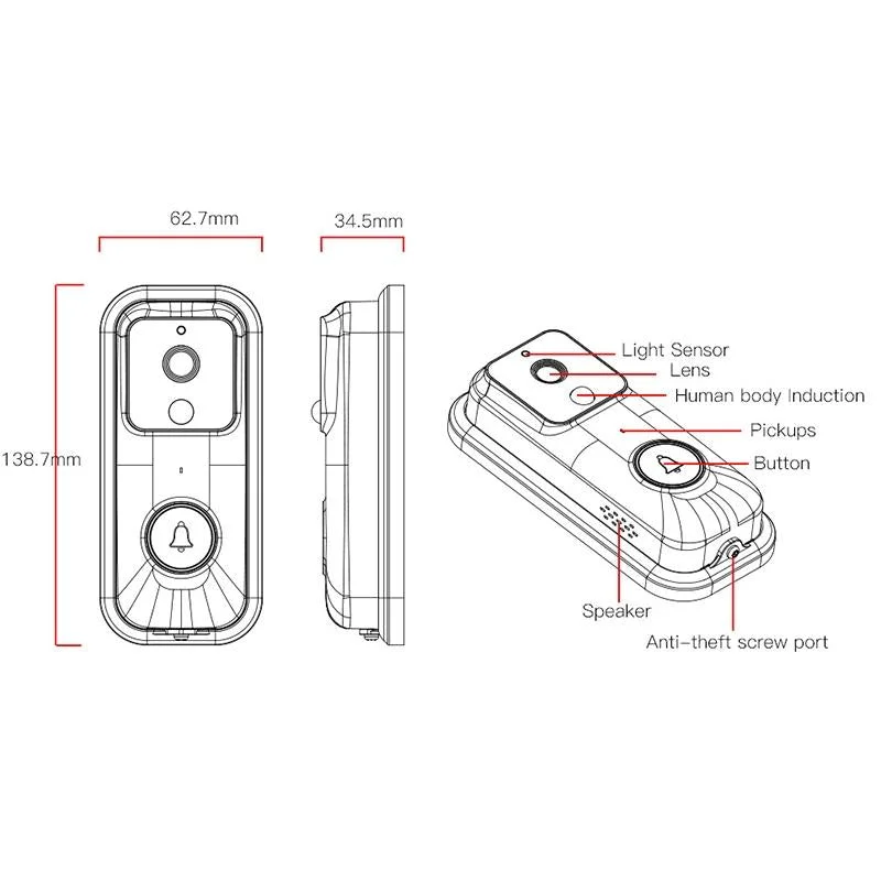 1080P Wifi Smart Cat Eye Video Doorbell With 4.3 Ips Lcd Screen And Infrared Night Vision Black