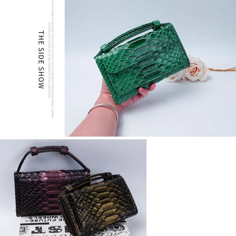 Vintage Leather Envelope Clutch with Zipper Closure - Dark Blue