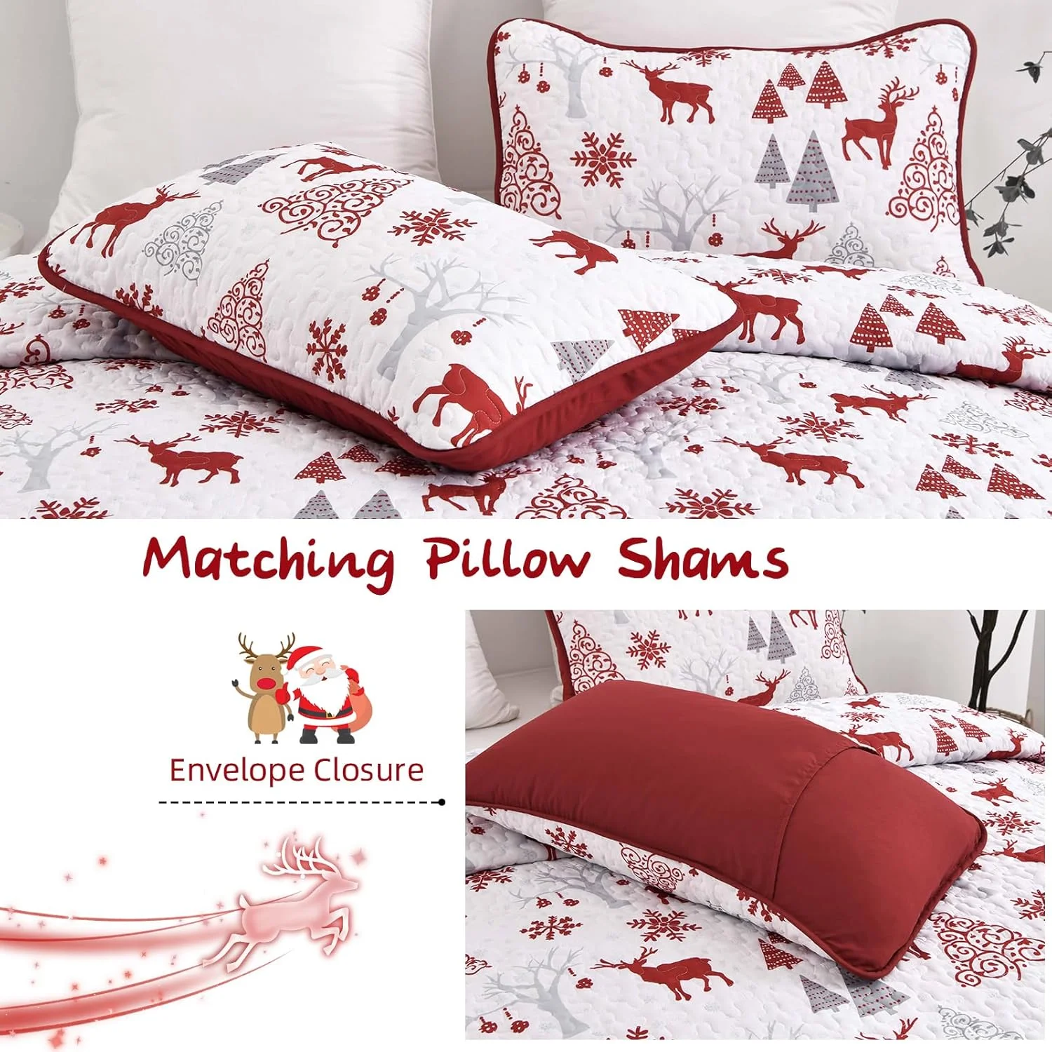 Enhance the comfort and charm of your bedroom this holiday season with our Queen Size Christmas Quilt Bedspread Set. Featuring delightful Santa Claus, reindeer, snowman, and snowflake designs, this reversible coverlet is perfect for creating a cozy and festive retreat.