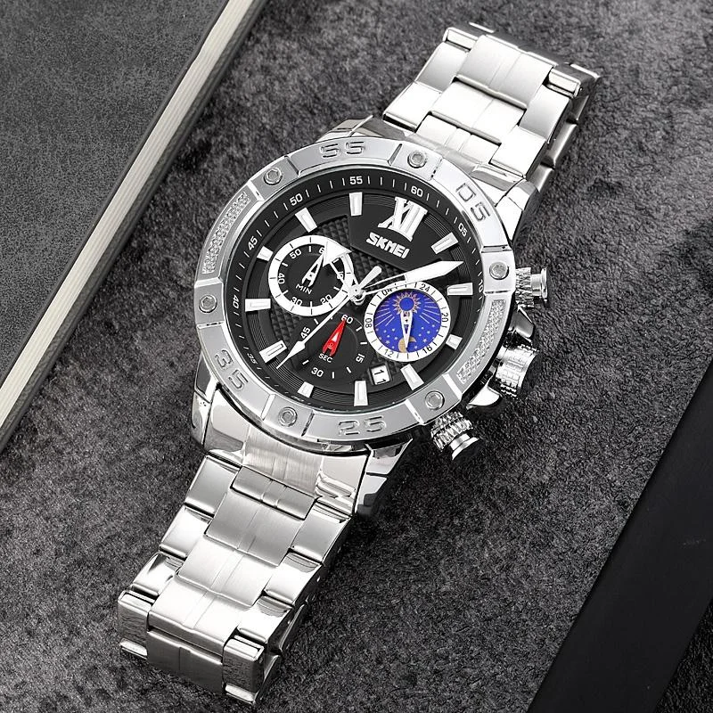 Men Three-eye Hollow Quartz Sports Watch - White Steel White Surface