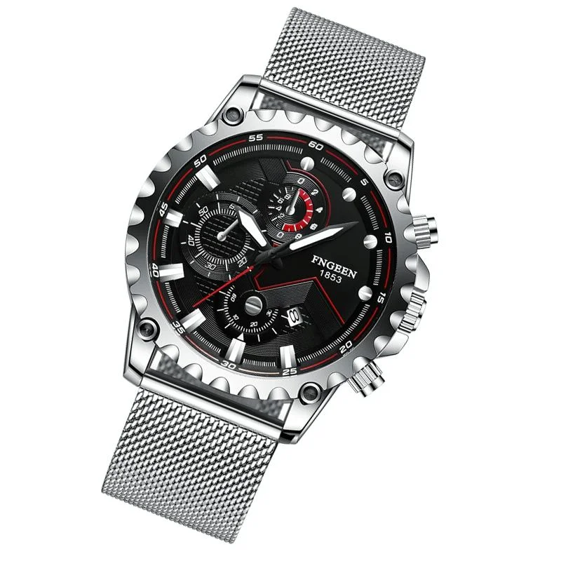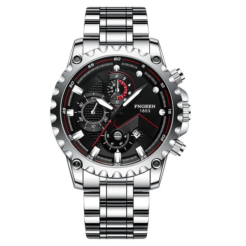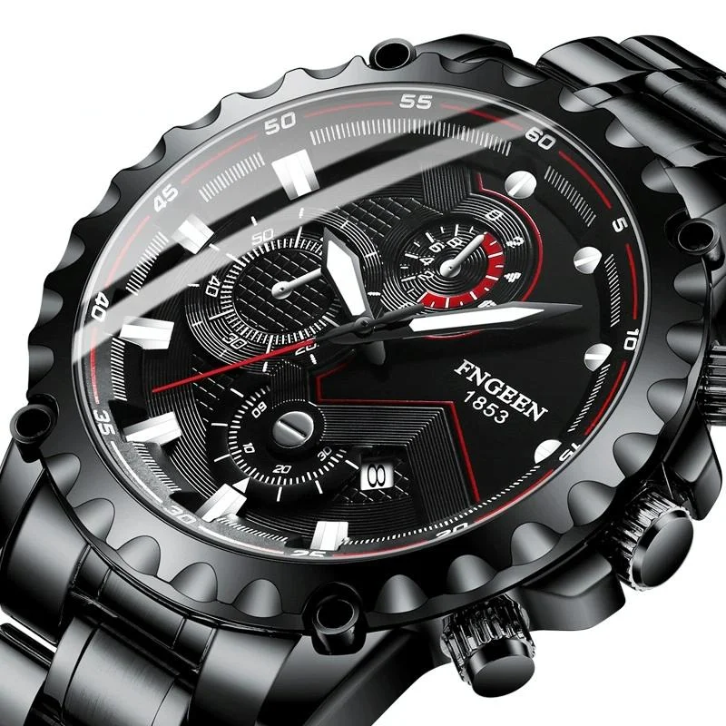 Large Screen Men Multi-function Watch with Steel Belt and Luminous Display