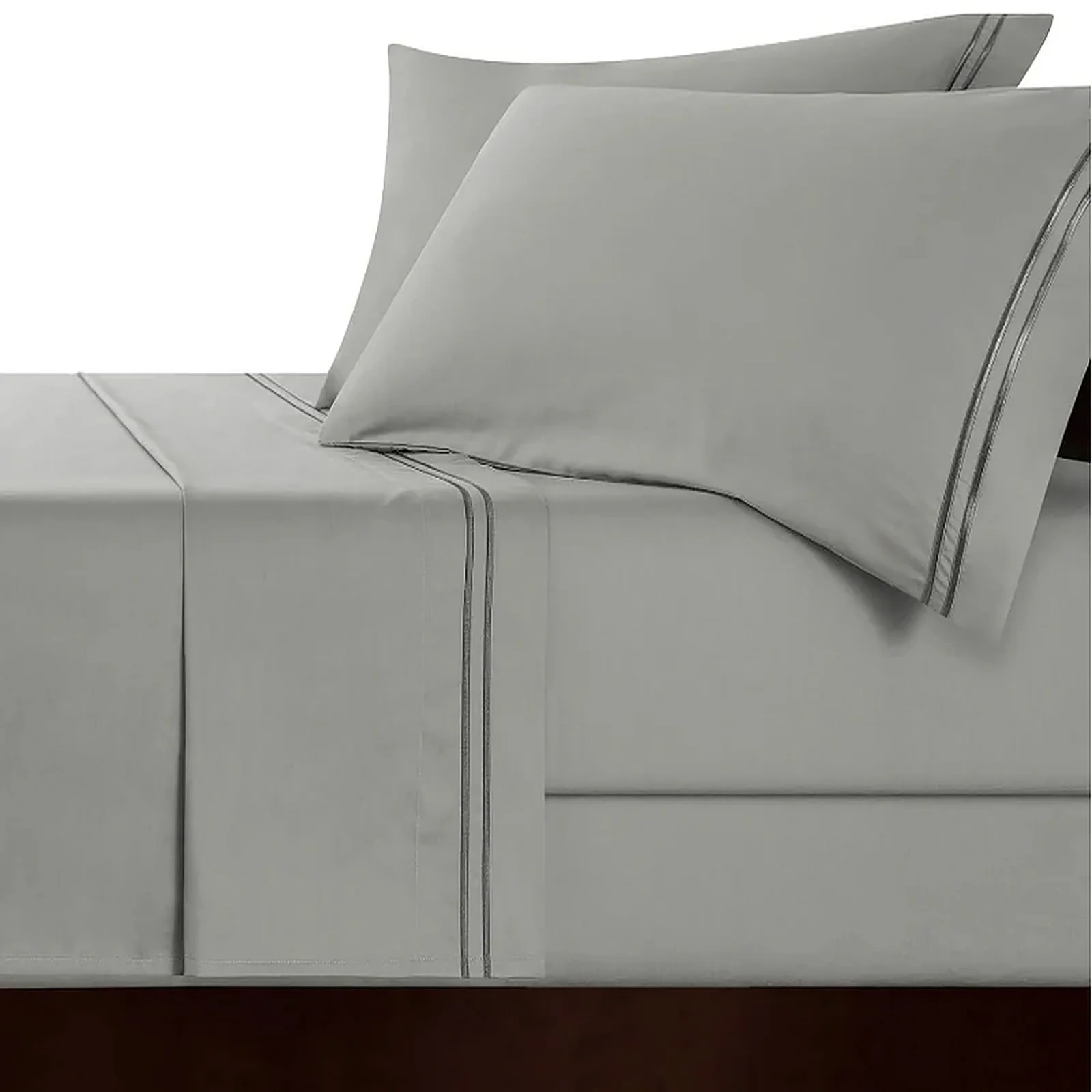 Egyptian Cotton 1000 Thread Count Sheet Set. There's a reason 100% Cotton Sheets remain a timeless favourite. They offer lasting durability, keeping you cool in the summer and cozy in the winter. Our ultra-soft Cotton Sheet Set features a classic embroidery detailing on the hem of the flat sheet & pillowcases which enhances the modern twist on a linen cupboard essential. This beautiful Sheet Set not only enhances your home but also supports a more sustainable planet. European Pillowcases sold separately.