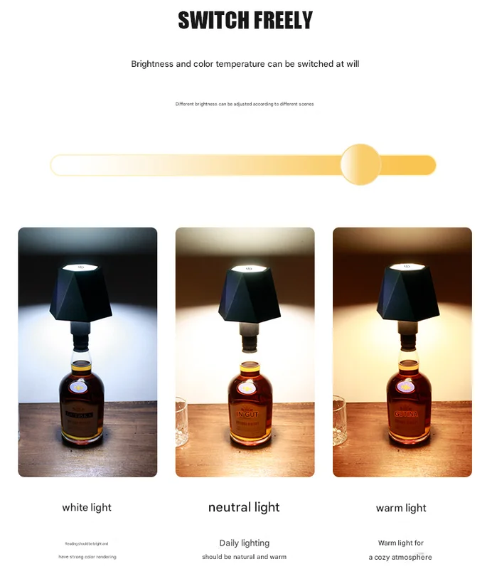 Instantly transform any empty bottle into a unique and stylish table lamp. This innovative LED light is designed to sit perfectly on top of your favourite wine, spirits, or soda bottles, creating a bespoke lighting feature for any setting. Cordless, rechargeable, and effortlessly chic, it's the perfect way to add a warm and inviting atmosphere to your bar, restaurant, dining table, or bedroom.