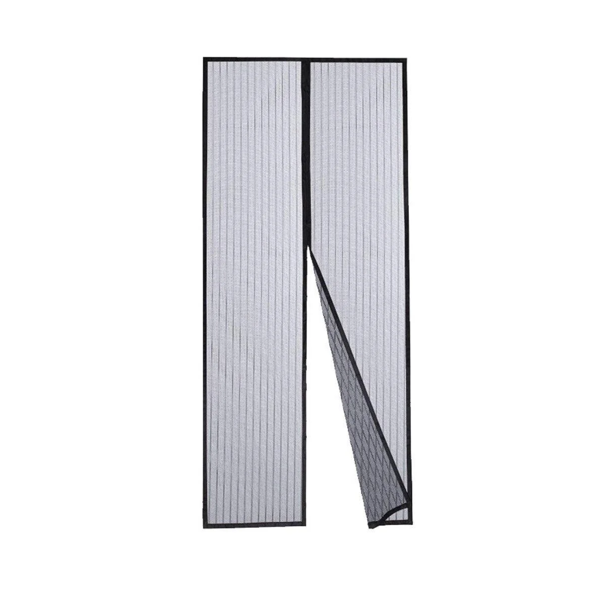 The mesh curtain automatically seals shut after passing through, ensuring hands-free convenience.