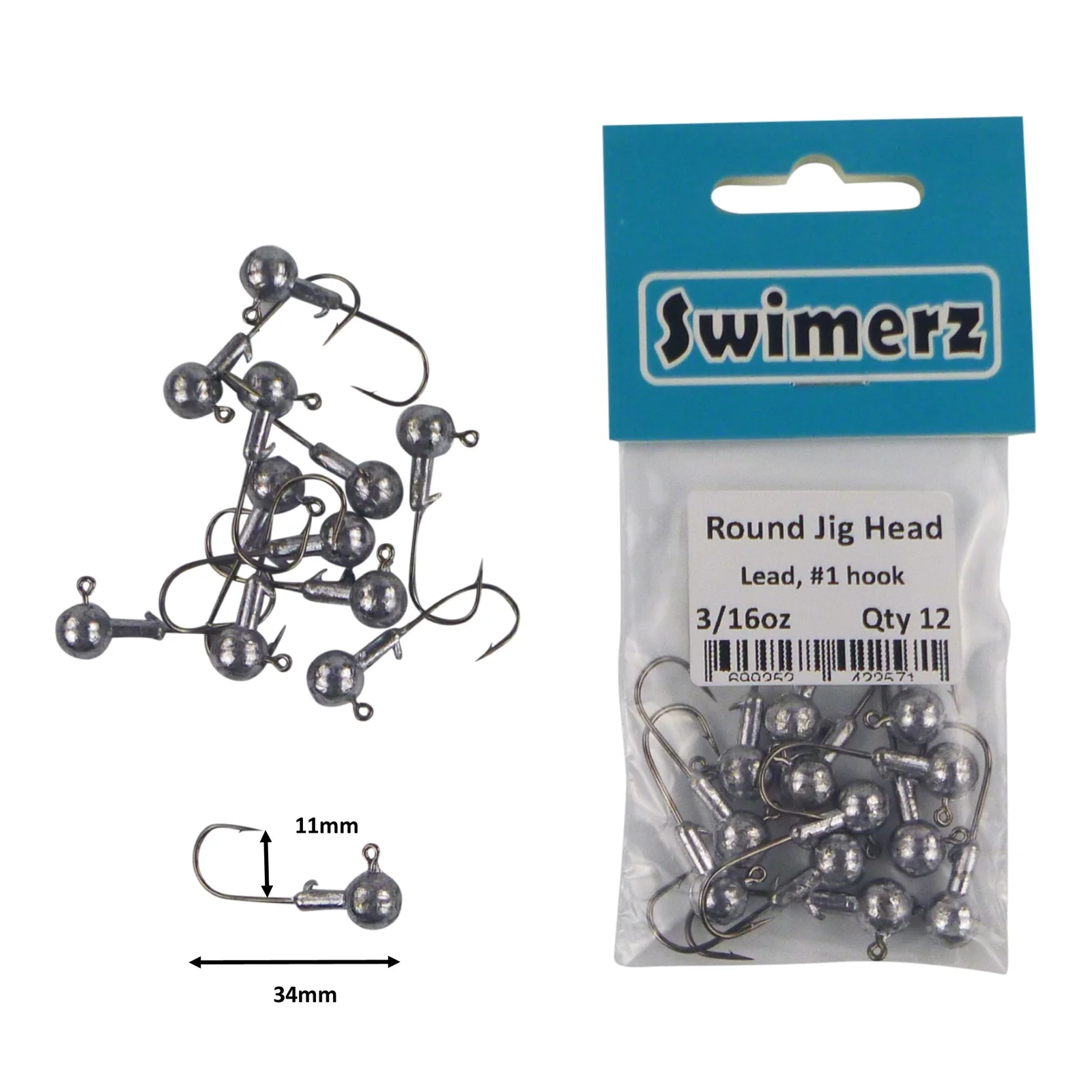 The round head jig is one of the earliest and most versatile jig head designs, engineered for use with a variety of soft plastic lures. Swimerz Round Jig Heads offer anglers the ability to target all species that strike plastics, across diverse habitats, using proven techniques like lift-and-drop for optimal lure action.