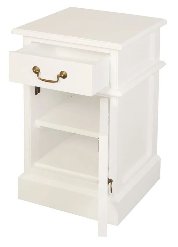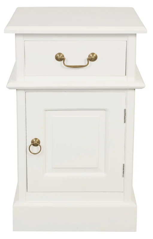 With its thoughtful design, the Tasmania bedside offers both functionality and style. The single drawer, adorned with a classic brass handle, provides easy access to essentials, while the lower cabinet with a solid door offers concealed storage to keep your space tidy. Measuring 40 cm wide, 38 cm deep, and 66 cm high, this piece is compact yet spacious enough for bedside storage needs. Best of all, it comes fully assembled, so you can enjoy it immediately without any hassle.
